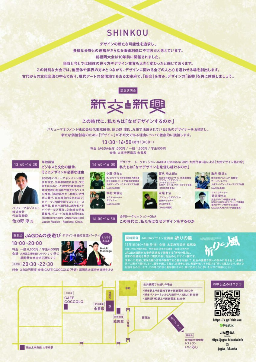 | 第2部:14:40 – 16:00 | JAGDA Exhibition 2025 九州代表5名による「九州デザイン熱の今」 私たちは「なぜデザインを発信し続けるのか」 (永尾 仁、小野信介、牛島樹世、冨永功太郎、米村知倫/武永茂久) |